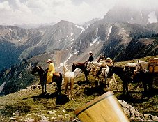 Guests ride horses or mules. Gear is packed on mules. High hunt is located